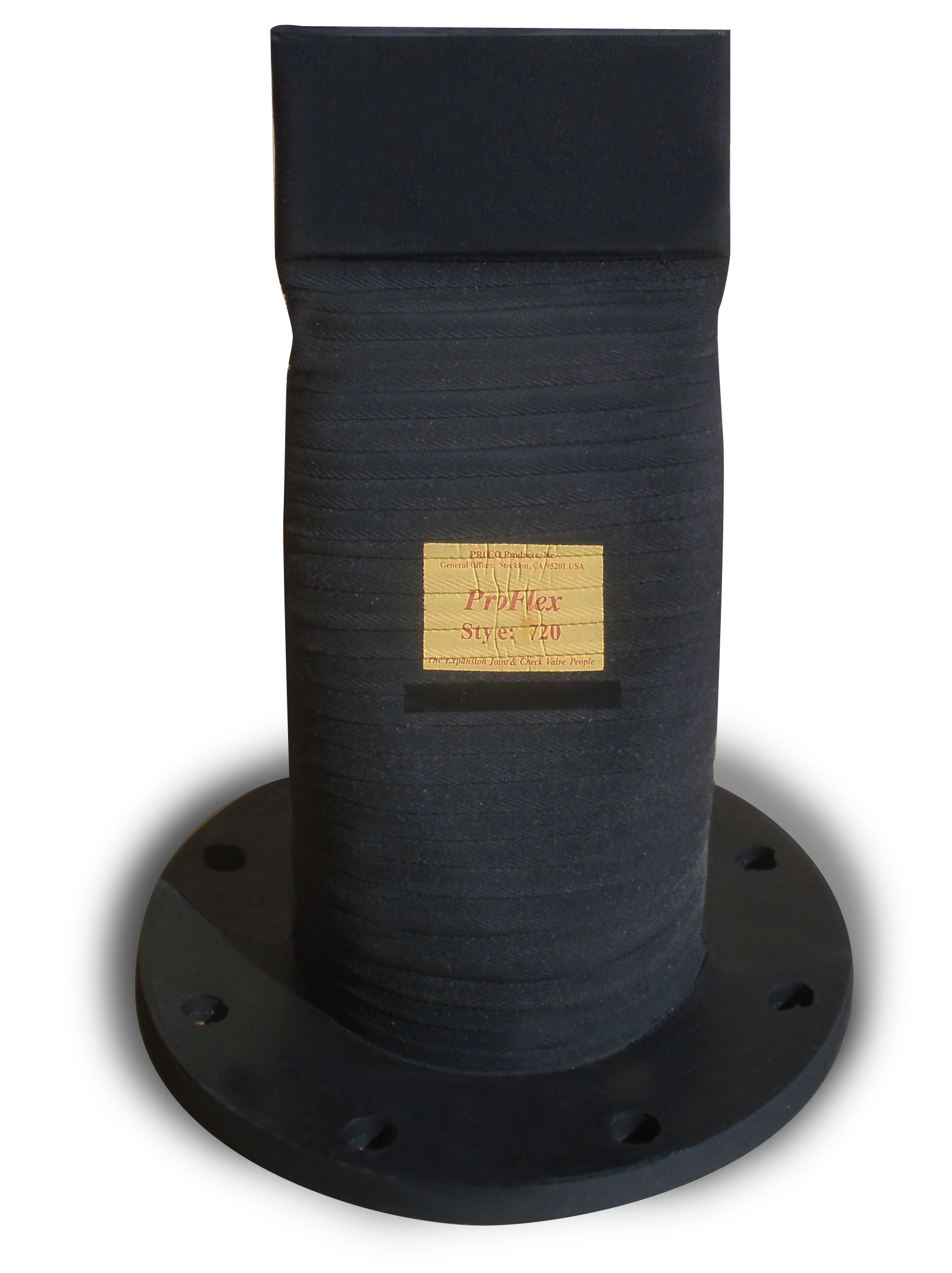The Proco ProFlex™ 720 in-line flanged rubber duckbill check valve is designed to fit directly inside of an existing pipe. This particular valve is supplied with a flat face rubber flange, which allows installation between existing pipe flanges, and eliminates the need for a valve body. Various drilling standards are available upon request.