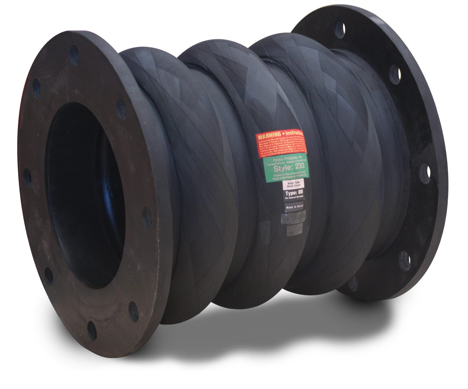 Proco Style 233 expansion joints are built to withstand even the most rigorous piping system configurations. They are triple wide-arch products, specifically constructed to reduce or eliminate common occurrences such as noise and vibration, misalignment/offset, or turbulence. Style 233 expansion joints are appropriate for a wide variety of industrial applications, and are available in open arch and filled arch configurations.