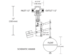 The 34 modulating float pilot is comprised of a copper float and brass rod assembly which moves vertically. As the level rises, the float lifts and the valve closes. The 34 pilot is optional pilot, available for modulating applications where the float and rod are installed in a still well and / or vertical action is preferred.
