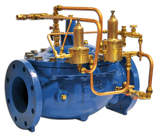 The valve is mounted in a tee, downstream of the pump check valve(s). It is designed to anticipate surges to avoid the severe water hammer often associated with power failure surges.