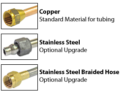 All Singer valves are fitted with Copper tubing as standard. There are optional upgrades to Stainless Steel or Stainless Steel braided hose available.